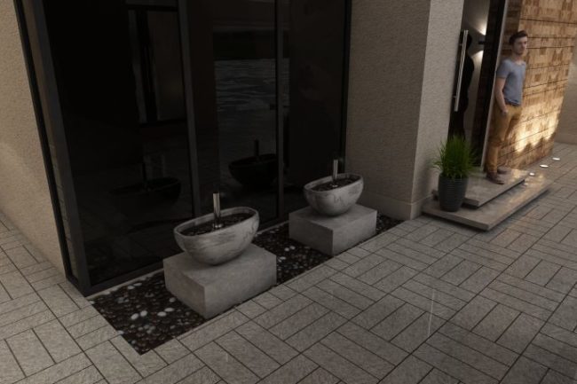 – الدور الارضي: صالة (دبل هايت) / مدخل سيارتين / زجاج استركشر