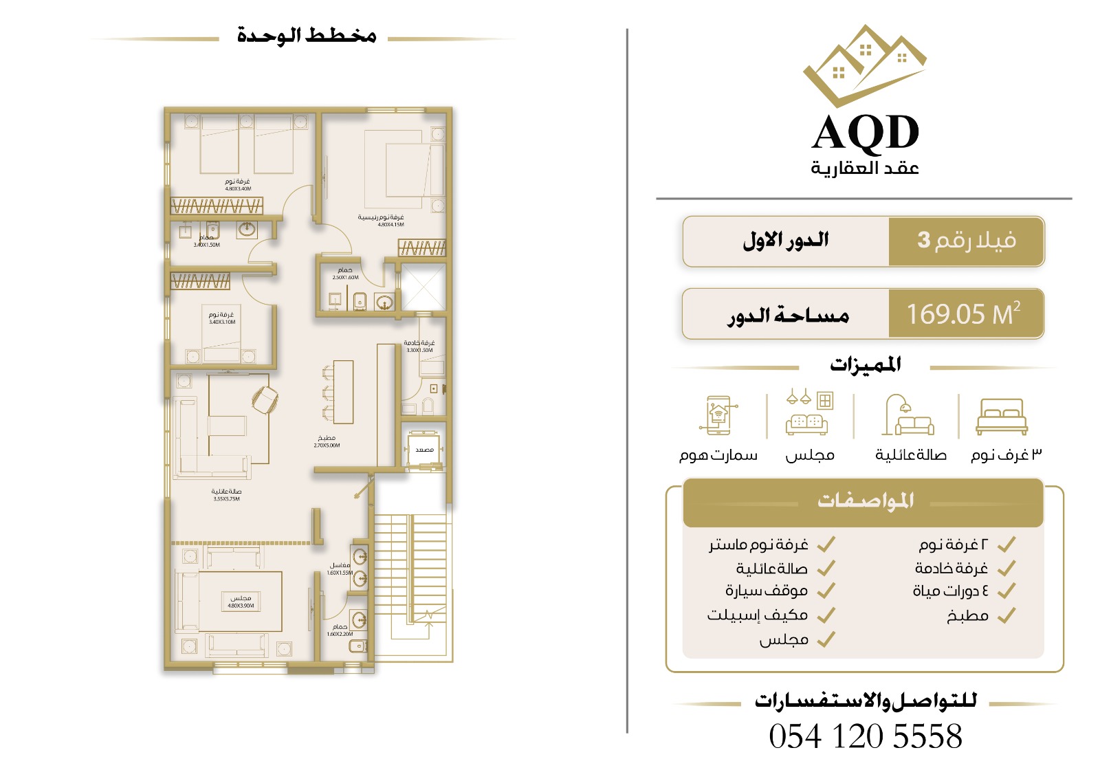 | فيلا رقم 3 - الدور الأول | 3 | 5 | 1 | 2 | - | حصري ومودرن | 169 م² | 1,750,000 |