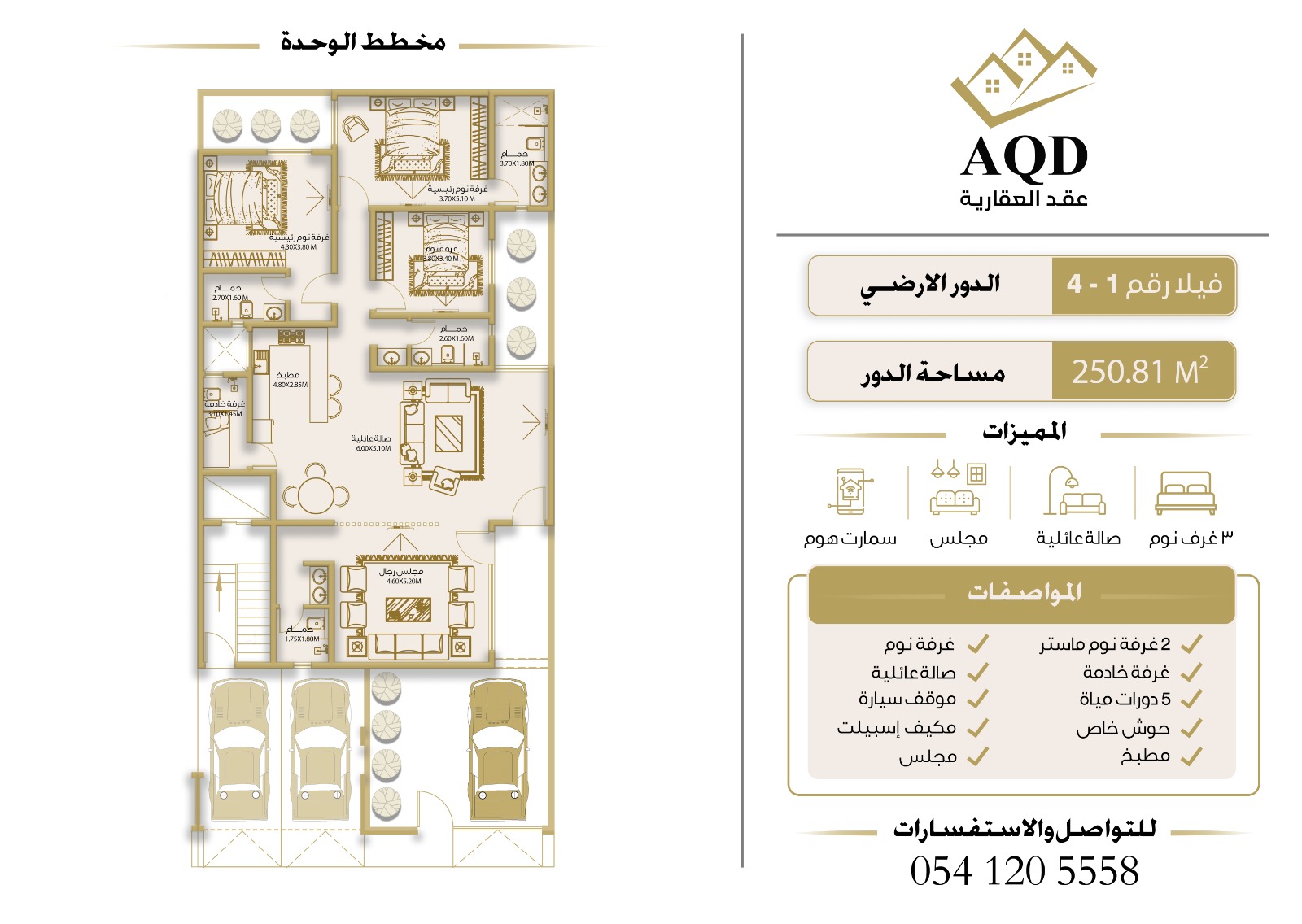 Nestled within the tranquility of Al-Izdihar and the sophistication of North Riyadh, the AQD 22 project emerges as an architectural icon that redefines modern living. It seamlessly blends contemporary lines with expansive glass facades that bathe the interiors in natural light, creating an unparalleled sense of freedom and space. Every detail is meticulously designed to be a family sanctuary where absolute privacy meets aesthetic elegance, offering smart layouts that separate guest reception areas from the three luxurious bedroom suites and dedicated maid’s quarters. Its prime location places you at the heart of the action, just minutes away from Riyadh’s most prominent landmarks; you are within easy reach of the vibrant Nakheel Mall, King Saud University, the King Abdullah Financial District (KAFD), and Riyadh Front (Roshen). AQD 22 is more than just a residence; it is an exceptional lifestyle experience in one of the capital’s most prestigious neighborhoods.
