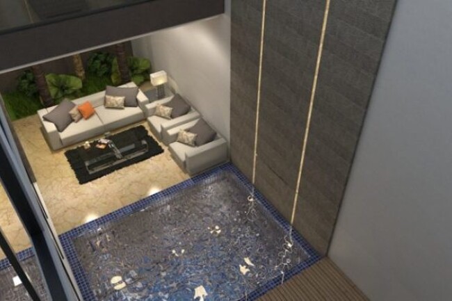 القبو : زجاج استركشر أضاءه طبيعية / مسبح / جلسة