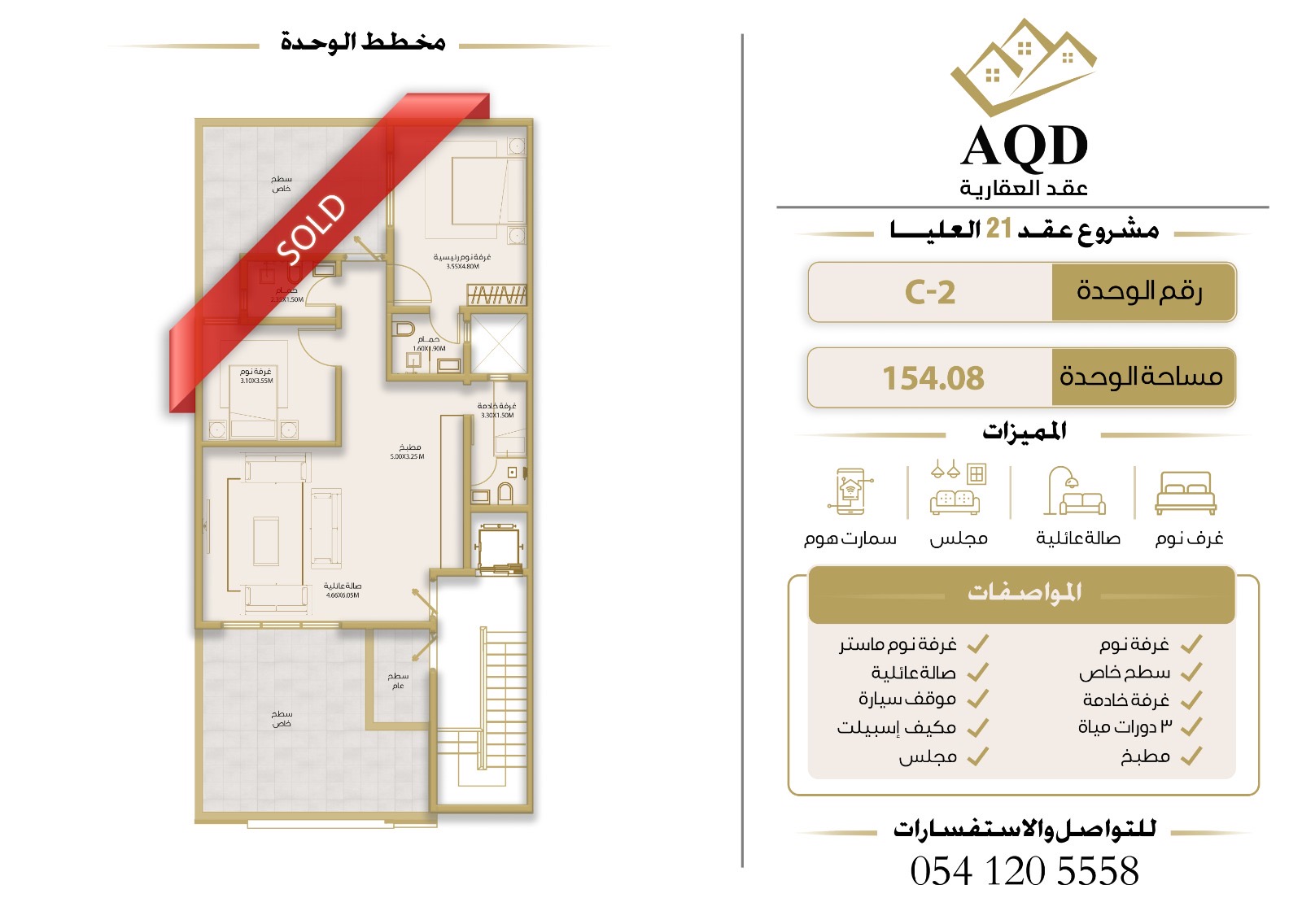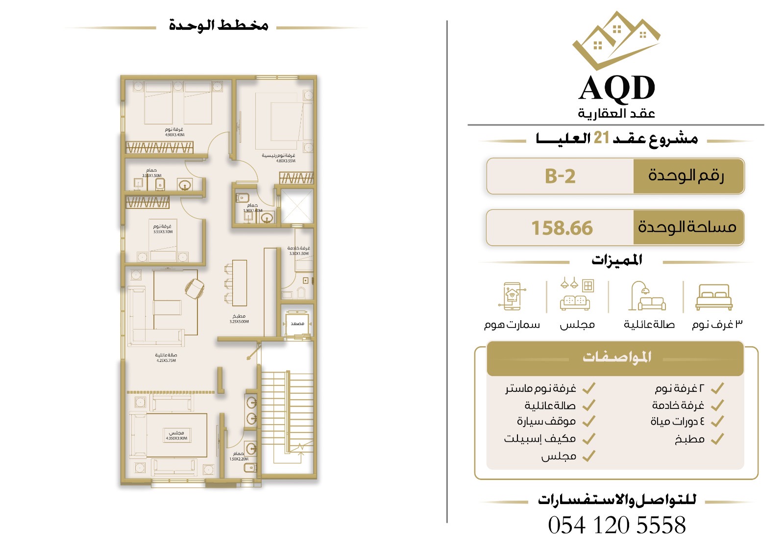 | فيلا رقم 2 - الدور الأول | 3 | 5 | 1 | 2 | - | حصري ومودرن | 159 م² | 1,650,000 |