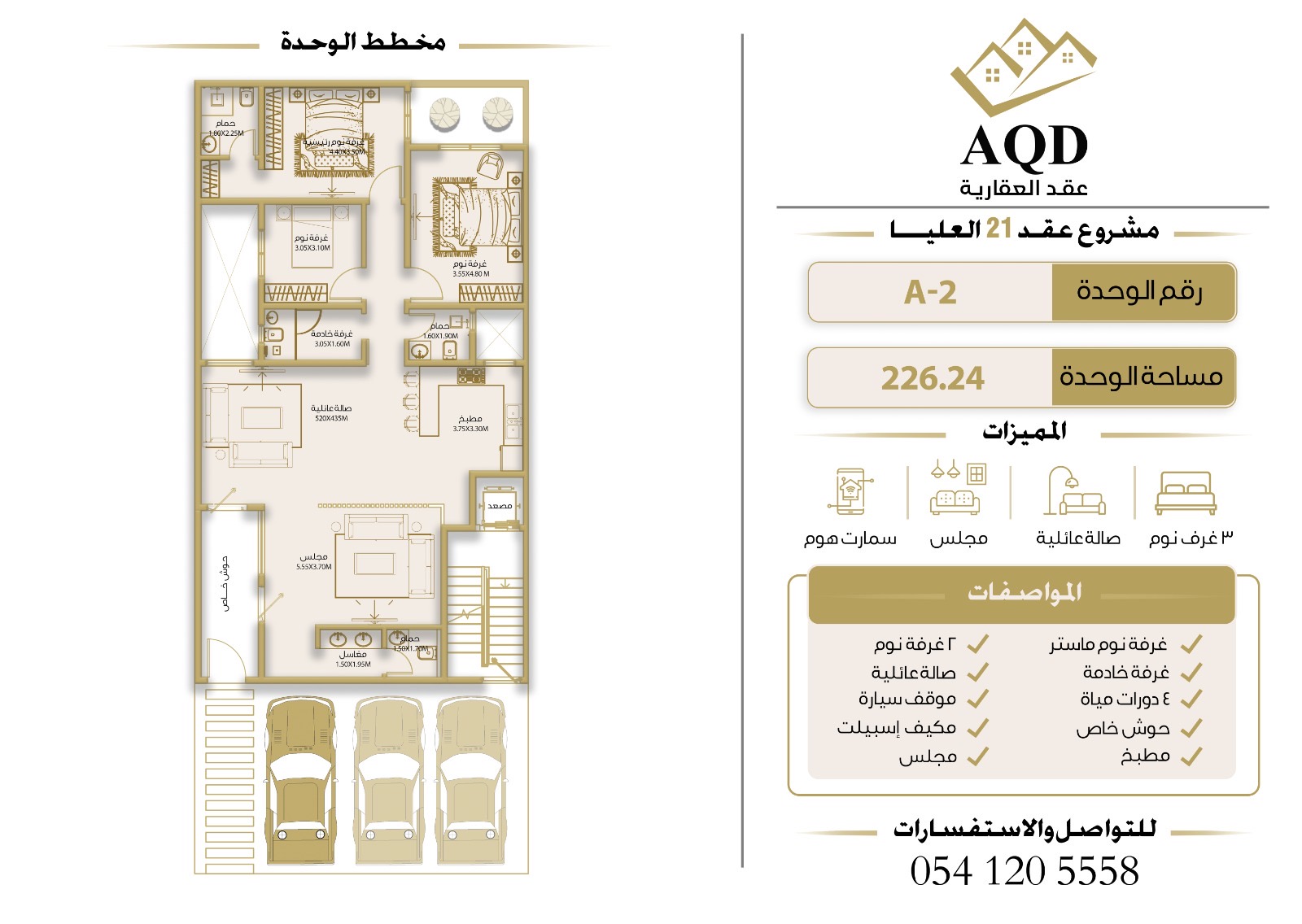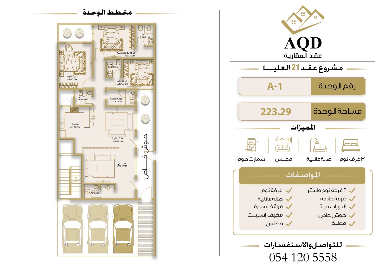 | فيلا رقم 3 - الدور الأول | 3 | 5 | 1 | 2 | - | حصري ومودرن | 169 م² | 1,750,000 |